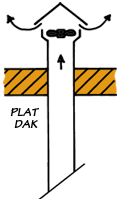 afvoer via het dak is nog altijd het beste. In een windstille omgeving is een kleine ventilator 12 V gelijkstroom, 1 Watt) voldoende en deze heeft al aan 3 tot 4 volt genoeg en werkt dan geruisloos.