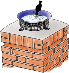 De ideale venturi maakten we vroeger van twee wieldoppen van een Volkswagen-kever. De wieldoppen kwamen dan met de bolle kant vier tot vijf centimeter uit elkaar; in de onderste was een gat uitgeslepen, waardoor deze goed klemmend kon worden bevestigd aan de meeste conische ‘schoorsteenpotten’, zoals die gemaakt van gresbuis uit het schoorsteenblok op de daknok steken. Nu goede wieldoppen (allemaal van plastic...) ontbreken raadt onze tekenaar-ontwerper Wim van Overbeeke aan er een enigszins bolle oude pandeksel voor te zoeken. De meeste zijn hard geëmailleerd. Daar moeten gaatjes in geboord worden voor bevestiging aan steunen van verzinkt ijzer of rvs. Wie de gresbuis die uit het cementen oppervlak van het schoorsteenblok oprijst glad langs het cement wegslijpt heeft al een mooie bolle onderkant, die tezamen met de met zijn bolle kant naar beneden bevestigde pandeksel een prachtige venturi vormt. Voordelen venturi: sterk verbeterde trekkracht door vergrote invloed van de wind (uit welke richting ook!) en een zich met regen- of gesmolten sneeuwwater vullende drinkbak voor vogels. Een strook gaas rond de venturi verhindert bouw van schoorsteennestjes!